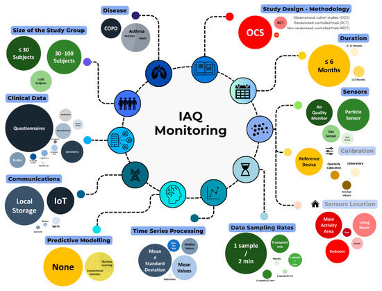 Graphical summary of evaluated aspects in IAQ monitoring.