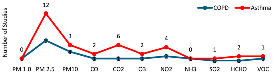 We undertook a systematic review to assess the evidence on the relationship between IAQ, COPD, and asthma. The Preferred Reporting Items for Systematic Reviews and Meta-Analyses (PRISMA) statement was used in this systematic review as a basis for reporting the findings [24]. The search aimed to identify studies with COPD and asthma patients in which IAQ parameters were monitored and linked to disease outcomes, such as acute exacerbation, using artificial intelligence or advanced statistics techniques.