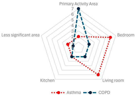 A systematic search in the Web of Science (SCI) database was undertaken. The search aimed to identify the evidence from the literature on experiences of IAQ monitoring applied to COPD and asthma. The search was performed on 14 May 2024, and the following search strings were used: (((ALL = (“COPD” OR “ASTHMA”)) AND ALL = (“indoor”)) AND ALL = (“air quality”)). Initially, searches that are more specific were performed, but finally, keywords that are more general were used to ensure the inclusion of potentially relevant studies.