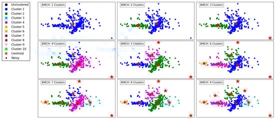 BIRCH’s strength lies in its ability to handle large datasets with limited memory resources [31]. The CF Tree structure enables incremental and dynamic clustering, making it well-suited for data streams and situations where the entire dataset cannot be loaded into memory simultaneously. The algorithm efficiently adjusts to changes in the dataset, maintaining its performance even as new data points are added.