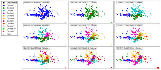- Savaresi, S.M.; Boley, D.L.; Bittanti, S.; Gazzaniga, G. Cluster selection in divisive clustering algorithms. In Proceedings of the 2002 SIAM International Conference on Data Mining, Arlington, VA, USA, 11–13 April 2002; Society for Industrial and Applied Mathematics: Philadelphia, PA, USA, 2002; pp. 299–314. [Google Scholar]