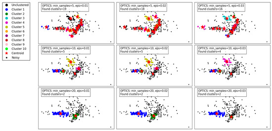 OPTICS, which stands for Ordering Points to Identify the Clustering Structure [41], is an advanced clustering technique that extends the capabilities of DBSCAN by addressing some of its limitations (Table 1). Unlike traditional clustering methods that require a predetermined number of clusters, OPTICS is designed to discover clusters of varying densities and sizes within a dataset.