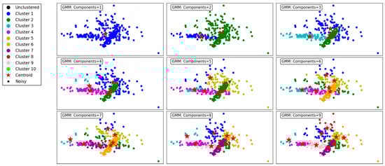 However, the GMM has some limitations. It requires the number of clusters to be specified in advance, which may not always be known. The algorithm can also be sensitive to the initial parameter estimates, and poor initialization can lead to suboptimal clustering results [51]. Additionally, the GMM assumes that the data follows a Gaussian distribution, which may not be appropriate for all datasets.
