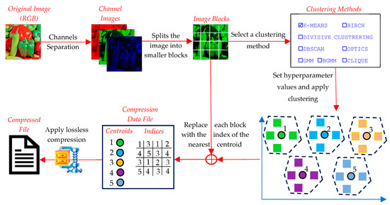 image compression; clustering techniques; K-Means; BIRCH; divisive clustering; DBSCAN; OPTICS; mean shift; GMM; BGMM; CLIQUE 1. Introduction