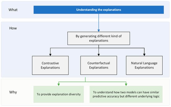 | Understanding the Explanations | By introducing contrastive explanations using symbolic reasoning to understand how two models can have similar predictive accuracy but different underlying logic. | [34] |