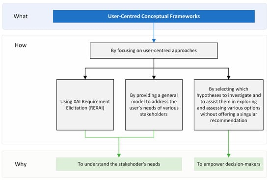 | User-Centred Conceptual Frameworks | Using the XAI requirement elicitation (REXAI) to identify, gather, and define stakeholders’ needs and expectations for XAI systems. | [48] |
