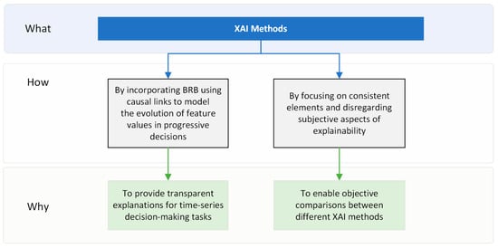 | XAI Methods | Incorporating a Belief-Rule-Based (BRB) approach and utilising the casual links to model the evolution of feature values in progressive decisions. | [41] |