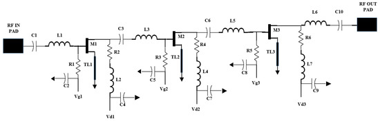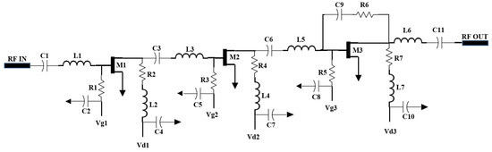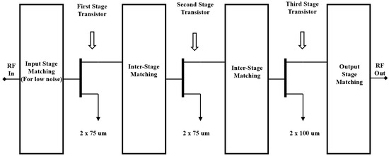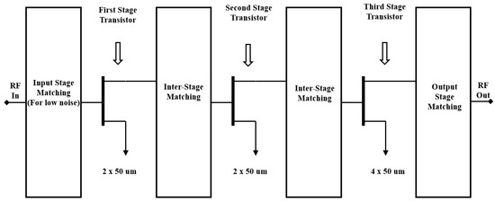- Uchida, H.; Takatsu, S.; Nakahara, K.; Katoh, T.; Itoh, Y.; Imai, R.; Yamamoto, M.; Kadowaki, N. Ka-band multistage MMIC low-noise amplifier using source inductors with different values for each stage. IEEE Microw. Guid. Wave Lett. 1999, 9, 71–72. [Google Scholar] [CrossRef]