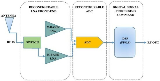 Reconfigurable receiver front-ends are of particular interest due to their ability to dynamically adjust key performance metrics such as gain, bandwidth, and noise figure based on real-time link requirements. Such adaptability is essential for heterogeneous networks supporting diverse applications, from massive Machine-Type Communications (mMTC) to ultra-reliable low-latency communication (URLLC) [14]. Reconfigurable architectures further enhance interference suppression and spectrum efficiency by incorporating advanced techniques such as adaptive beamforming, frequency-agile filters, and hybrid analogue-digital signal processing [5].