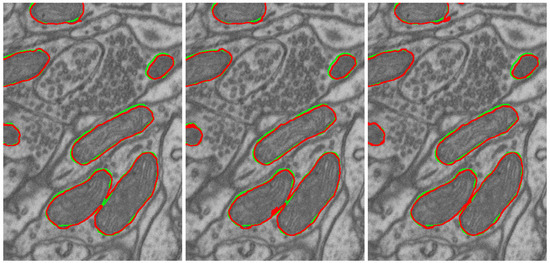 Thus, in our work, we used three markups of the same dataset (EPFL, Lucchi++, and ours markups); the difference between the markups is shown in the Figure 4. We calculated the differences between markups using the formula