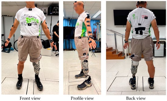 To evaluate the performance of the ELS-foot during dynamic activities in real-life scenarios, six individuals including two females and four males were recruited from an orthotic and prosthetic association in Hong Kong. Table 3 presents the information of participants recruited between 1 October 2023 and 31 December 2023. Human subject ethics approval was obtained from the university ethics committee (HSEARS20220411007) for this study. The inclusion criteria are that the participants have to (1) have a unilateral transtibial amputation, (2) be using a prosthesis classified as Medicare Functional Classification Level (MFCL or K Level) [17] 2 (K2) or higher, and (3) be able to walk freely without the use of any additional walking aid like a stick, crutches, or a walker. Prior to the commencement of the study, the recruited participants were informed about the study’s content and signed consent forms agreeing to the use of their testing data for analysis. Then a certified prosthetist–orthotist conducted the fitting and alignment procedures for each participant. The participants underwent a two to three-week acclimatization period to adjust to their individual socket alignment and ELS-foot [18,19]. The prosthetist–orthotist conducted a subjective evaluation to ensure proper fit and alignment of the prosthetic feet, sockets, and components (e.g., wire diameter of the spring) for each participant prior to the wear trial. Each participant visited the laboratory two times during a 3-to-5-day interval for the wear trial. Furthermore, they were required to wear the same tight-fitting garments, shoes, liner, and sockets for the two visits to reduce any variability.
