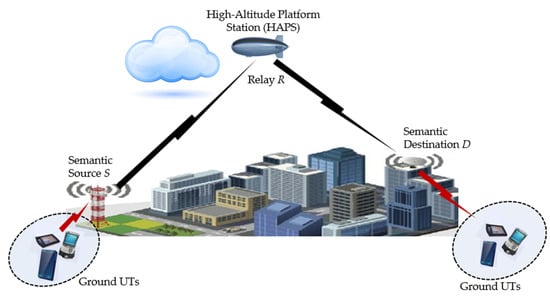 Practically, the semantic encoder receives , where , is the set of real numbers, and H, W, and C are the height, width, and color channels, respectively. It is worth noting that represents the i-th UT’s image data on the source’s ground side. After feature extraction, processing, and data size adjustment, the aggregated semantic image data are channel-wise encoded for further transmission to the relay, which processes and forwards the received data to the destination, as illustrated in the scenario of Figure 2.