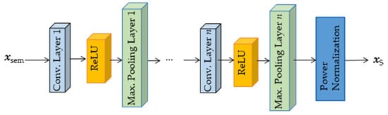The network subsystem in Figure 3 illustrates the architecture of the semantic encoder, which yields the aggregated semantic image data, , as outputs during the feature extraction process by exploiting a series of layers in convolution networks to help detecting the image’s local patterns and hierarchies. Global average and maximum pooling help to reduce the spatial dimensions of the feature maps, leading to lower computational cost and greater feature robustness to variations in the input.