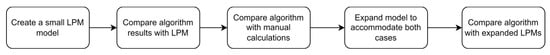 In the model testing phase, two steps are performed to make sure the model works as intended: verification and validation. Verification is performed either by static or dynamic testing. In this case, static testing is used where each element in the model is observed by a peer to make sure it behaves as it was first made in the model construction phase. This is followed by corrective action if any element is found not as behaving as intended. Validation, on the other hand, is making sure that the model complies with the initial problem formulated. This could be performed by using a benchmark problem where the mathematical answer is already known []. This step is shared between both cases since the base model for both cases is the same.