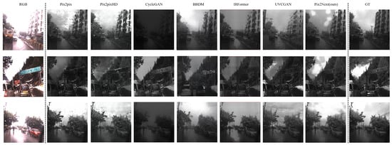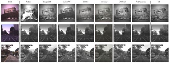 - Chen, Y.; Chen, P.; Zhou, X.; Lei, Y.; Zhou, Z.; Li, M. Implicit Multi-Spectral Transformer: An Lightweight and Effective Visible to Infrared Image Translation Model. arXiv 2024, arXiv:2404.07072. [Google Scholar] [CrossRef]