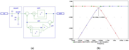 - Dozio, R.; Burke, M. Second and third order analogue high-pass filters for diagnostic quality ECG. In Proceedings of the IET Irish Signals and Systems Conference (ISSC 2009), Dublin, Ireland, 10–11 June 2009. [Google Scholar] [CrossRef]