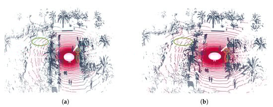 - Behley, J.; Garbade, M.; Milioto, A.; Quenzel, J.; Behnke, S.; Stachniss, C.; Gall, J. Semantickitti: A dataset for semantic scene understanding of LiDAR sequences. In Proceedings of the IEEE/CVF International Conference on Computer Vision, Seoul, Republic of Korea, 27 October–2 November 2019; pp. 9297–9307. [Google Scholar]