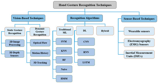 Technological advancements in computers and hardware components have increased our daily exposure to human–computer interactions (HCIs). Individuals are interested in HCIs incorporating hand gestures because they are a pleasant way to interact with the computer [1]. Since gestures are the building blocks of language and can transmit a wide range of information, they are crucial to interactions between people. Actions and statements without gestures are inadequate; they are devoid of true feelings and thoughts. There are four types of hand gestures: informal, manipulative, controlling, and communicative [2,3,4].