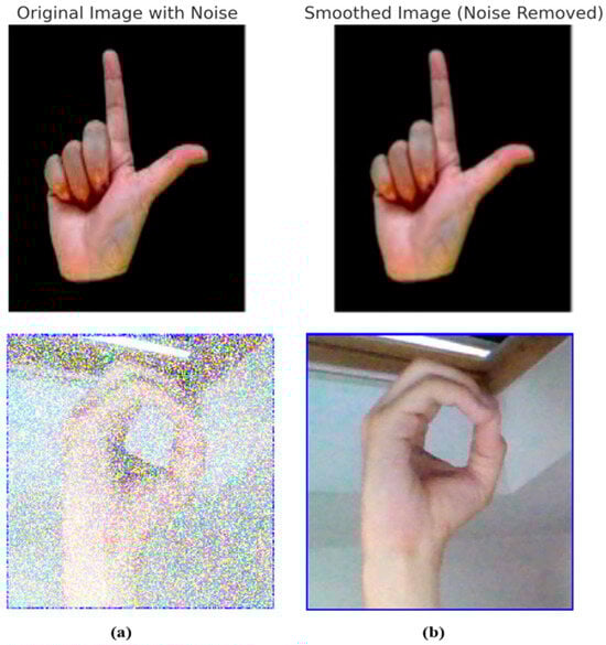 Static hand gestures are defined by a single, fixed hand form or position; dynamic gestures, on the other hand, incorporate movement across time, as shown in Figure 2. Our research focuses on static hand gesture detection, which is crucial in domains such as computer vision, human–computer interaction, and sign language interpretation. Methods of identifying these gestures frequently entail analyzing hand locations and shapes using image processing, machine learning, and deep learning.