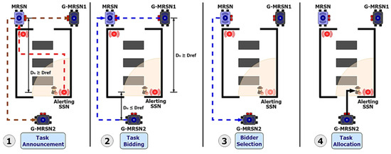 - Smith, R.G. The Contract Net Protocol: High-Level Communication and Control in a Distributed Problem Solver. IEEE Trans. Comput. 1980, 29, 1104–1113. [Google Scholar] [CrossRef]
