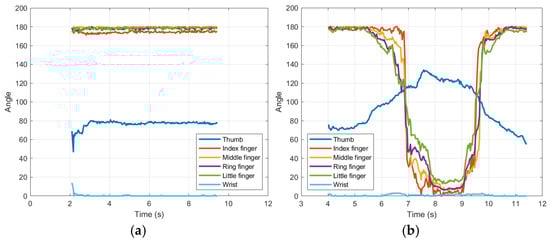 Reference points were obtained using MediaPipe (a) with fingers extended with servo bias at 180 degrees and (b) with fingers contracted with servo bias at 0 degrees. The point is that this only refers to the wrist alone.
