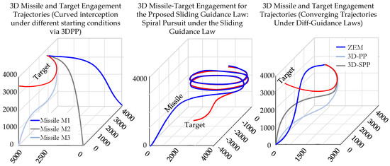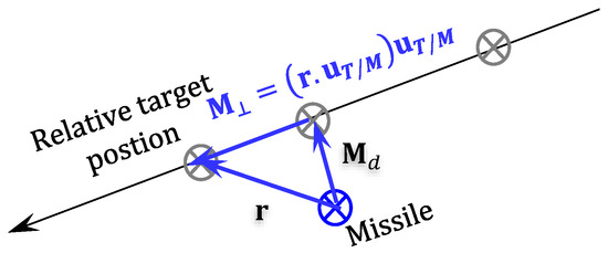 Driving the purser to intercept a specific target with zero miss distance is the primary goal of missile guidance laws, and in this regard, it can be said that the missile is trying to hit the target in a stable manner and with high accuracy [1]. However, this is rarely possible, as there is always a miss distance between the target and the point where the missile explodes. Therefore, the goal of missile control is to reduce the miss distance to avoid hitting the wrong target and to ensure that the maximum damage is inflicted on the intended target [2]. One of the most practical laws of missile guidance is the Proportional Navigation Guidance (PNG) law, which has been proven to be an effective and simple guidance algorithm for homing guidance systems, thus showing its wide applications over the past few decades [3,4]. The main principle of PNG is to apply a lateral acceleration command to nullify the line-of-sight (LOS) rate, thereby forcing the interceptor to remain within the collision triangle. The LOS angular rate information needed in the guidance law can be obtained by an onboard seeker. To improve the miss distance performance of guided missiles, several techniques have been proposed. The optimization of the PNG algorithm was studied in a paper [5], and its extension to the 3D scenario can be found in [6,7]. The most common forms of proportional navigation (PN) include true PN, where acceleration is directed perpendicular to the line of sight; pure PN, where acceleration is directed perpendicular to the interceptor’s velocity vector; and ideal PN, where acceleration is directed perpendicular to the relative velocity vector. However, certain other forms are based on differential geometry [8]. In recent years, extensive research has been devoted to the field of homing guidance systems, largely due to their capability to achieve “fire-and-forget” attacks. With the advancement of nonlinear control theory, a significant number of terminal guidance laws related to homing guidance have been proposed, such as the Multi-Task Switching Guidance [9,10], Integrated Guidance and Control Design [11], Deep Reinforcement Learning-Based Intelligent Guidance [12], Path-Following Approach [13], Cooperative guidance of seeker-less missile [14], Fuzzy and Sliding Mode-based Guidance [15], The modified 3D-PN navigation has been extensively discussed in the literature for over half a century [16]. When considering target interception alone, the tracking error is defined as either the zero-effort miss (ZEM) distance or the LOS rate. Nullifying one of them results in a perfect interception [17].