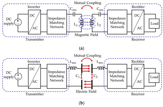 Wireless power transfer (WPT) technology enables wireless energy transmission through various methods, including inductive coupling-based inductive wireless power transfer (IPT) and capacitive coupling-based capacitive wireless power transfer (CPT) [1]. This technology has been extensively studied for application in devices requiring a power supply [2,3,4].