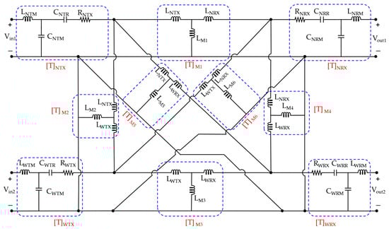 The parameters illustrated in Figure 5 are summarized in Table 1. To accurately represent self-inductance in the T-model circuit, it must be considered as the value obtained after subtracting mutual inductance, as shown in Figure 4b. In a four-port network, each self-inductance accounts for three mutual inductances.