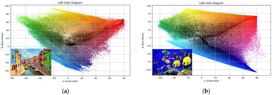 3.2. Color Gamut Analysis of an Image in the CIE L*a*b* Color Space