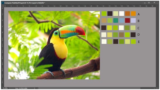 - Kösesoy, M.B.; Yilmaz, S. A Novel Color Difference-Based Method for Palette Extraction and Evaluation Using Images of Birds. IEEE Access 2025, 13, 52270–52283. [Google Scholar] [CrossRef]