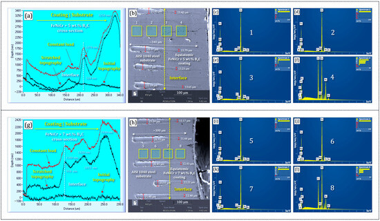 - The comprehensive scratch test analysis demonstrated the enhanced wear resistance and robust mechanical properties of the FeNiCr-B4C coatings. These coatings exhibit excellent adhesion, a beneficial hardness gradient, high cohesive strength, a degree of plasticity, and homogenous B4C dispersion, all contributing to their overall durability.