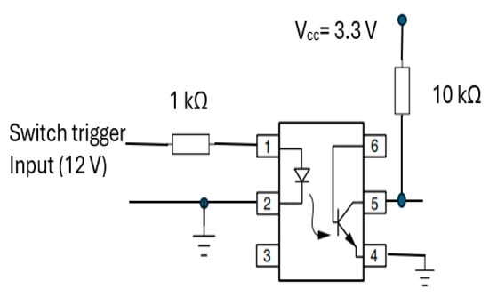 - Vishay. Optocoupler. Available online: https://www.vishay.com/docs/83725/4n25.pdf (accessed on 7 April 2025).