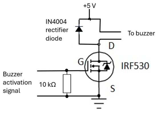 - Vishay. IRF530 Power MOSFET. Available online: https://www.vishay.com/docs/91019/irf530.pdf (accessed on 7 April 2025).