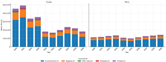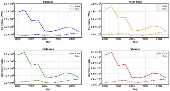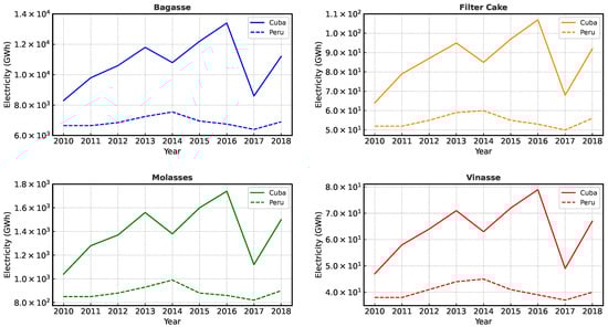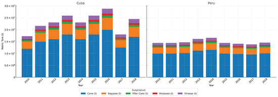 Addressing this gap is especially urgent in regions with high climatic and operational variability, such as Peru and Cuba, where sugarcane production is a cornerstone of the agricultural sector. In these regions, variations in rainfall, soil fertility, and harvesting practices can significantly influence the quantity and composition of generated residues, making it challenging to predict their bioenergy potential accurately [45]. Additionally, the unique socio-economic and regulatory contexts of these countries necessitate tailored solutions that account for local conditions. For example, in Peru, small-scale mills often face financial and technical constraints that limit their ability to adopt advanced technologies, while in Cuba, centralized state-controlled mills require region-specific strategies to maximize resource recovery and energy generation [46].