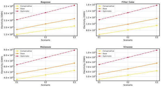 - Junior, L.M.C.; Júnior, E.P.S.; da Silva, C.F.F.; de Oliveira, B.H.C.; Dantas, J.B.C.; dos Reis, J.V.; Schramm, V.B.; Schramm, F.; Carvalho, M. Supply of bioelectricity from sugarcane bagasse in Brazil: A space–time analysis. Sustain. Environ. Res. 2024, 34, 17. [Google Scholar] [CrossRef]