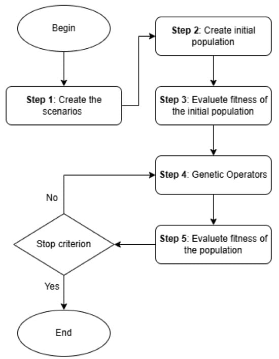 The parameters of the genetic algorithm are presented in Table 3. These parameters were defined empirically. For all cases, the convergence criterion is the maximum number of iterations. Ten simulations were conducted for each case defined in the following. All simulations were performed on a 2.7 GHz Intel® Core i7 processor, with the codes implemented in MATLAB® software version R2015a.