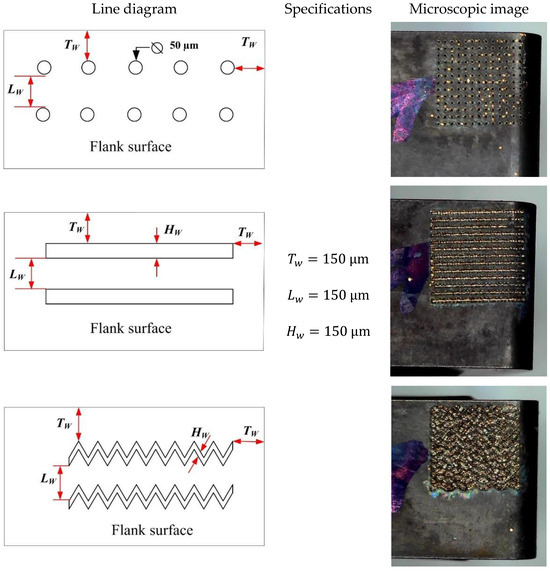 The specifications and line diagram of the texture geometries used in the present research.
