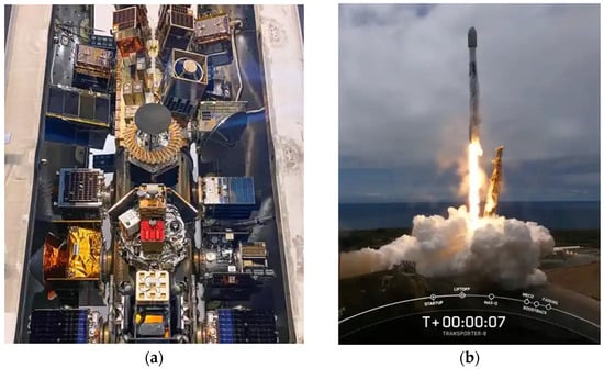 - Foust, J. SpaceX Launches Eighth Dedicated Smallsat Rideshare Mission. Available online: https://spacenews.com/spacex-launches-eighth-dedicated-smallsat-rideshare-mission/ (accessed on 11 March 2025).