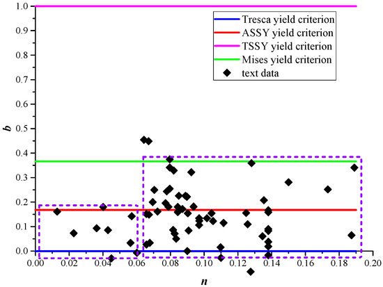 According to Equation (1), The primary determinant of the yield criterion selection is parameter b, and the expression for parameter b, as shown in Equation (2), can be obtained, as follows:
