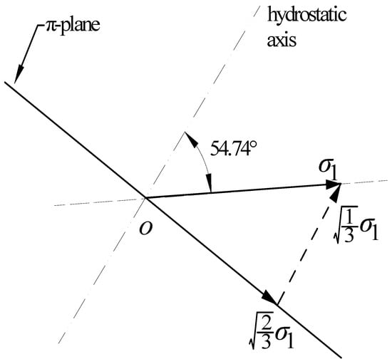 Figure 4 depicts the representation of the principal stress projected onto the π-plane. Based on Figure 3 and Figure 4, the principal stress at position D can be determined with the following calculations: