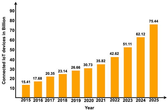 Growth of IoT devices during the years 2015 and 2025.