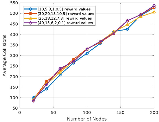 Comparison of collisions in different reward value sets.