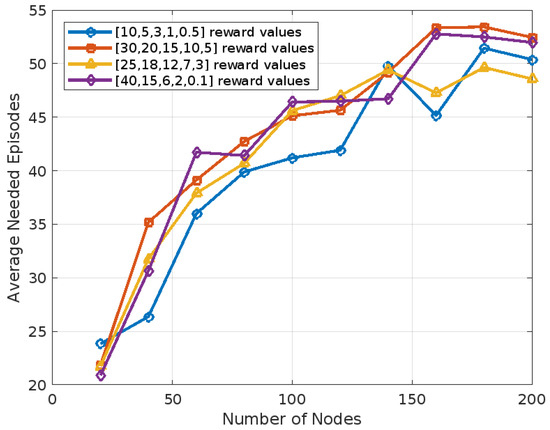 Comparison of needed episodes in different reward value sets.