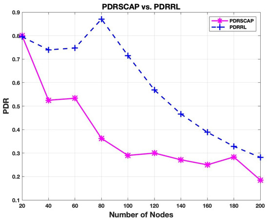 Better packet delivery performance is shown by RL-SCAP, indicating its capacity to efficiently handle network conflict. An improved PDR denotes greater use of resources, which makes the communication network more dependable.