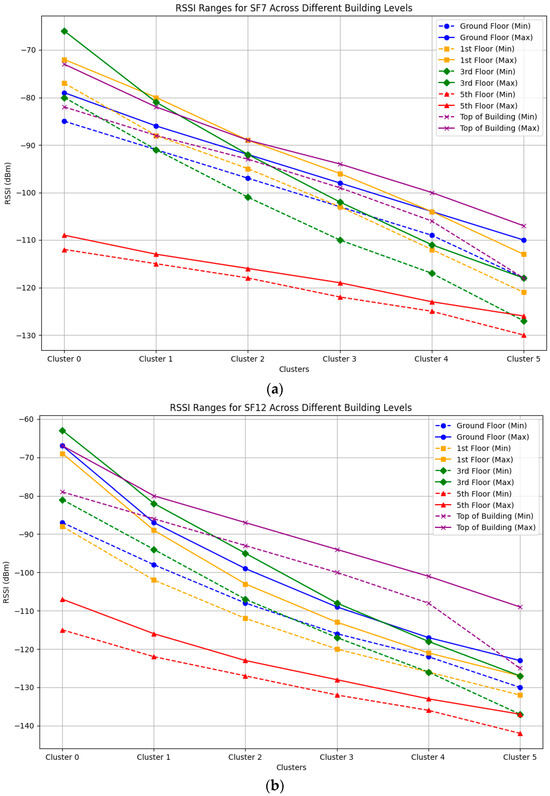 | Cluster | Gateway Level | SF12 (dB) | No. of Points | SF7 (dB) | No. of Points |