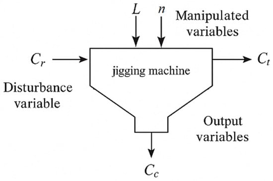 Manipulated, disturbance, and output variables of a jigging machine.