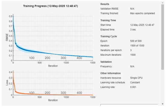 The neural network was trained on a dataset consisting of 1500 samples. These samples included both real experimental data collected from the jigging machine and synthetic data generated using the particle motion model described in Section 3.2. The dataset was divided into three subsets: training (70%), validation (15%), and testing (15%). To prevent overfitting, L2 regularization and an early stopping criterion based on validation loss were employed. The learning curves were monitored throughout the training process. No significant overfitting was observed, and the final model performed stably on the test set.