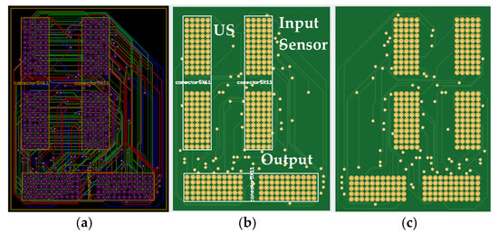2D view of (a) six planes with the 220 tracks, (b) top PCB, and (c) bottom PCB of the proposed electronic interface.