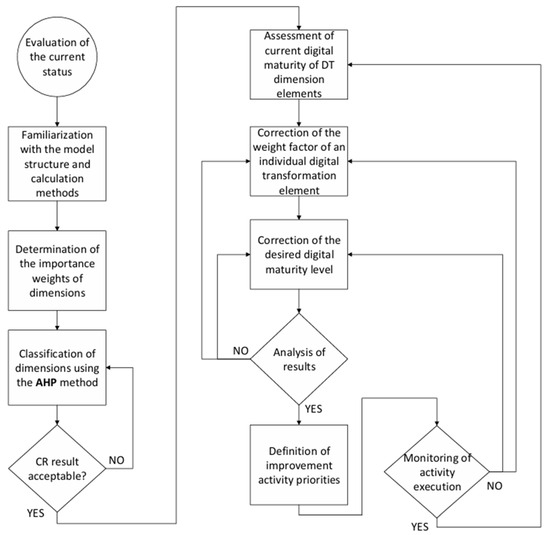 The literature review has provided essential insights and knowledge necessary for understanding the specifics of DT processes and their application in different contexts. Given the variety of models that have been developed for different industries and use cases, it is important to identify and select the most appropriate model that provides the most value for a particular company’s digitalization journey. Most existing DMMs have been developed for specific industries, company sizes, or geographic regions. These models are often proprietary or “closed”,” meaning that end users are usually unable to customize the evaluation criteria to their own strategic priorities or the relevance of certain factors that are critical to a successful DT implementation. The limited transparency and complexity of the methods used make it difficult for users to understand the underlying model mechanisms. This can lead to uncertainty in the interpretation of results, complicate the process of defining actionable steps and priorities for further development, and ultimately weaken motivation or even lead to DT initiatives being abandoned, missing crucial opportunities to improve competitive advantage [27].