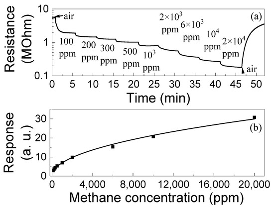 where Rair is the resistance of samples in pure dry air; Rg is the resistance of samples in a gas mixture of pure dry air + CH4.